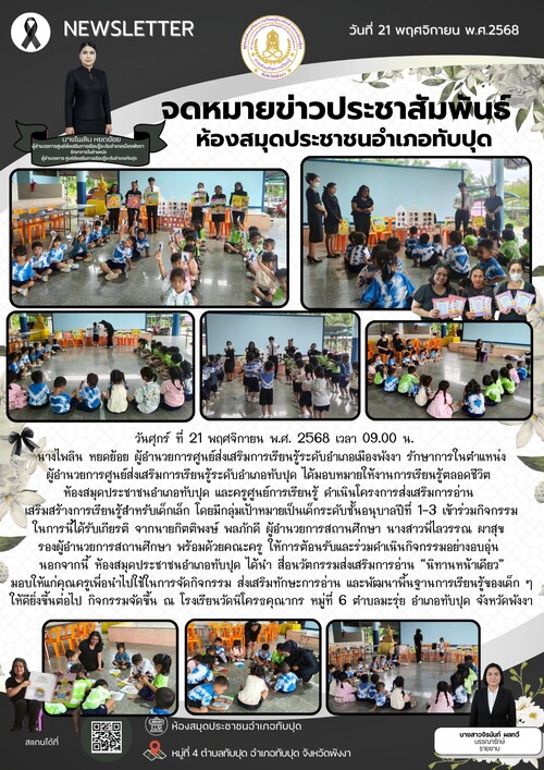 ณ บ้านหนังสือชุมชนบ้านปากทางมะรุ่ย หมู่ที่ 6 ตำบลมะรุ่ย อำเภอทับปุด จังหวัดพังงา