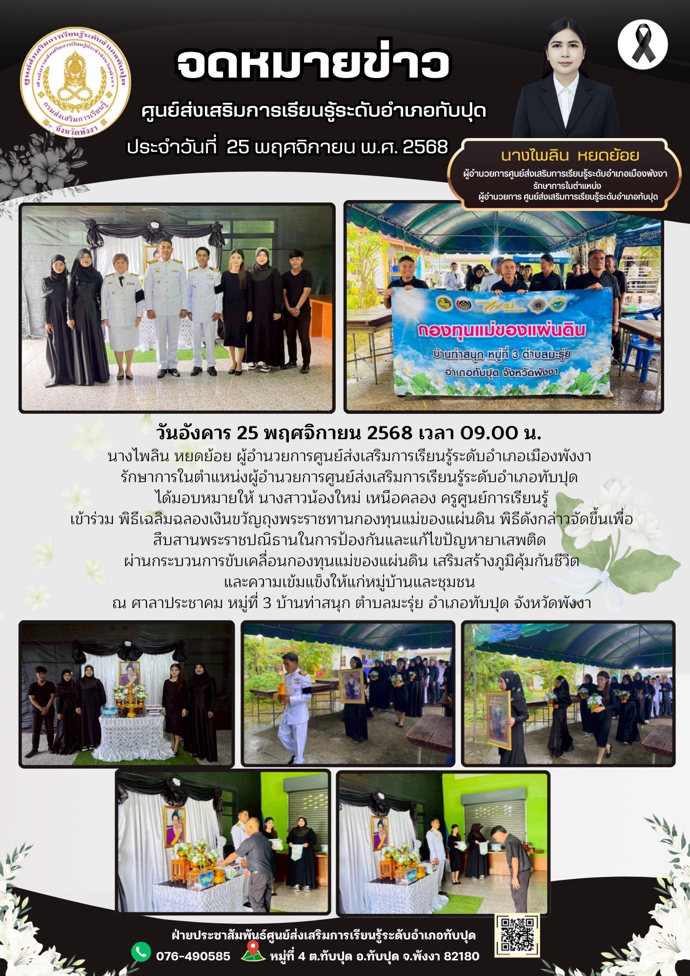 ณ ศาลาประชาคม หมู่ที่ 3 บ้านท่าสนุก ตำบลมะรุ่ย อำเภอทับปุด จังหวัดพังงา