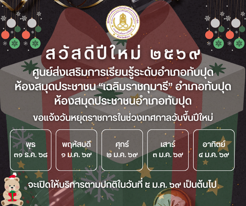 ขอแจ้งวันหยุดราชการในช่วงเทศกาลวันขึ้นปีใหม่ 30 ธ.ค. 68